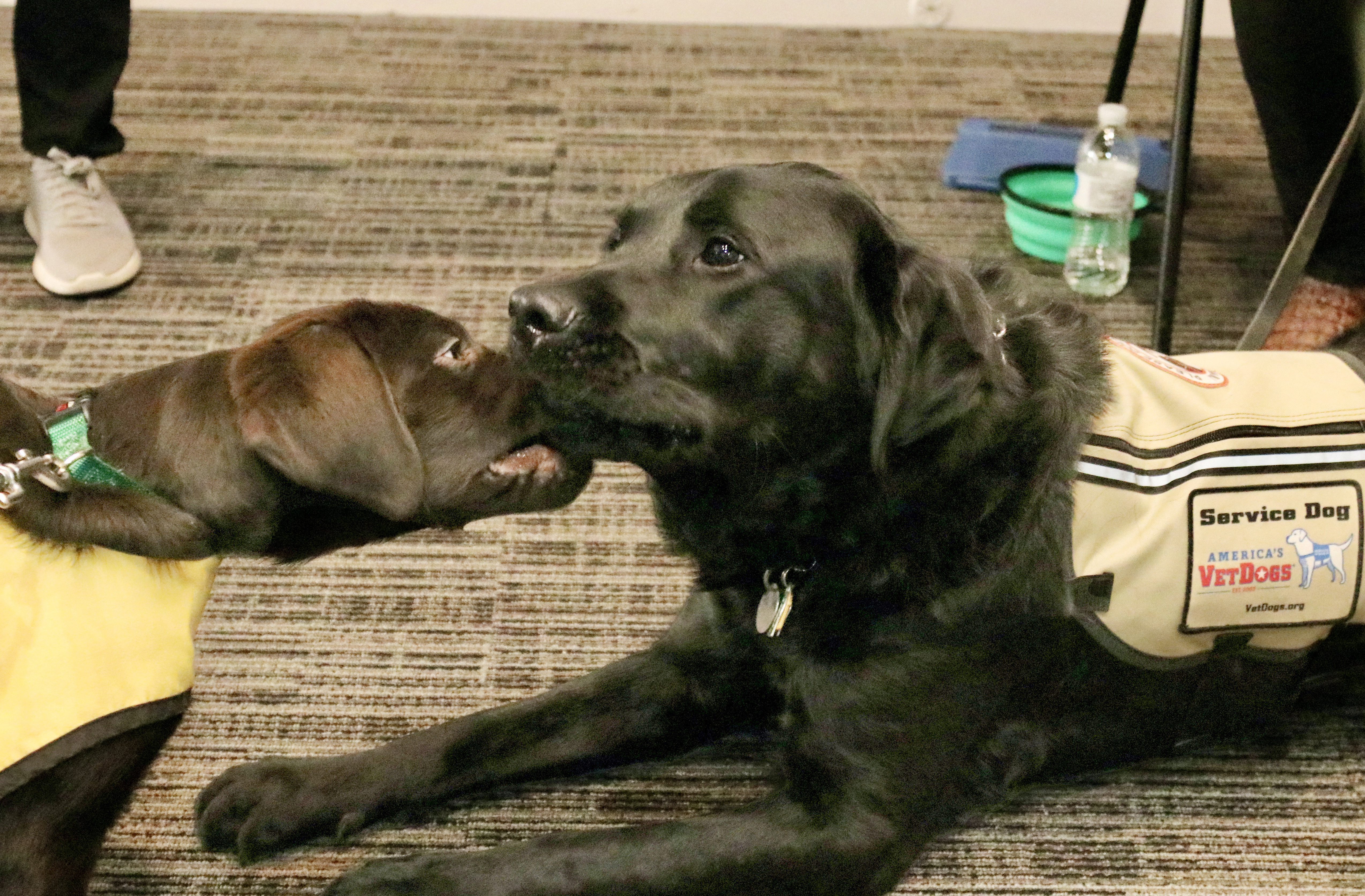 Paula Giardinella brought Judge, a 3-month-old chocolate lab puppy in training who also happily rolled around on the floor. She runs the organization’s Massachusetts prison puppy program, which is an important part of their work.